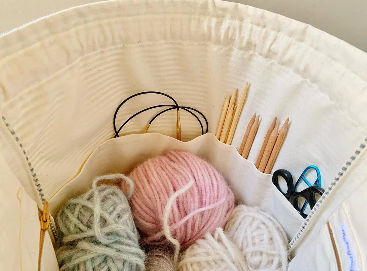 Pokarnir frá Thereyougrow geyma allt sem þú þarft í prjónaverkefnið, garn, prjóna, uppskriftir og smáhluti á snyrtilegan og öruggan hátt. Þeir eru sterkir og endingargóðir en um leið mjúkir og léttir, þannig að auðvelt er að taka þá með sér hvert sem er.